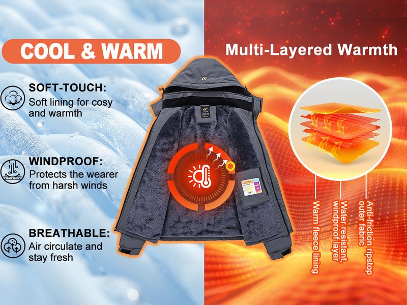 - Fitted Design - Adjustable cuffs help seal and keep warm, and a layer of soft, skin-friendly fleece is attached to the inner neckline. The outer layer is tightly windproof, and the inner layer is fleece and thickened. Achieve effective temperature lock, warm and comfortable to wear.